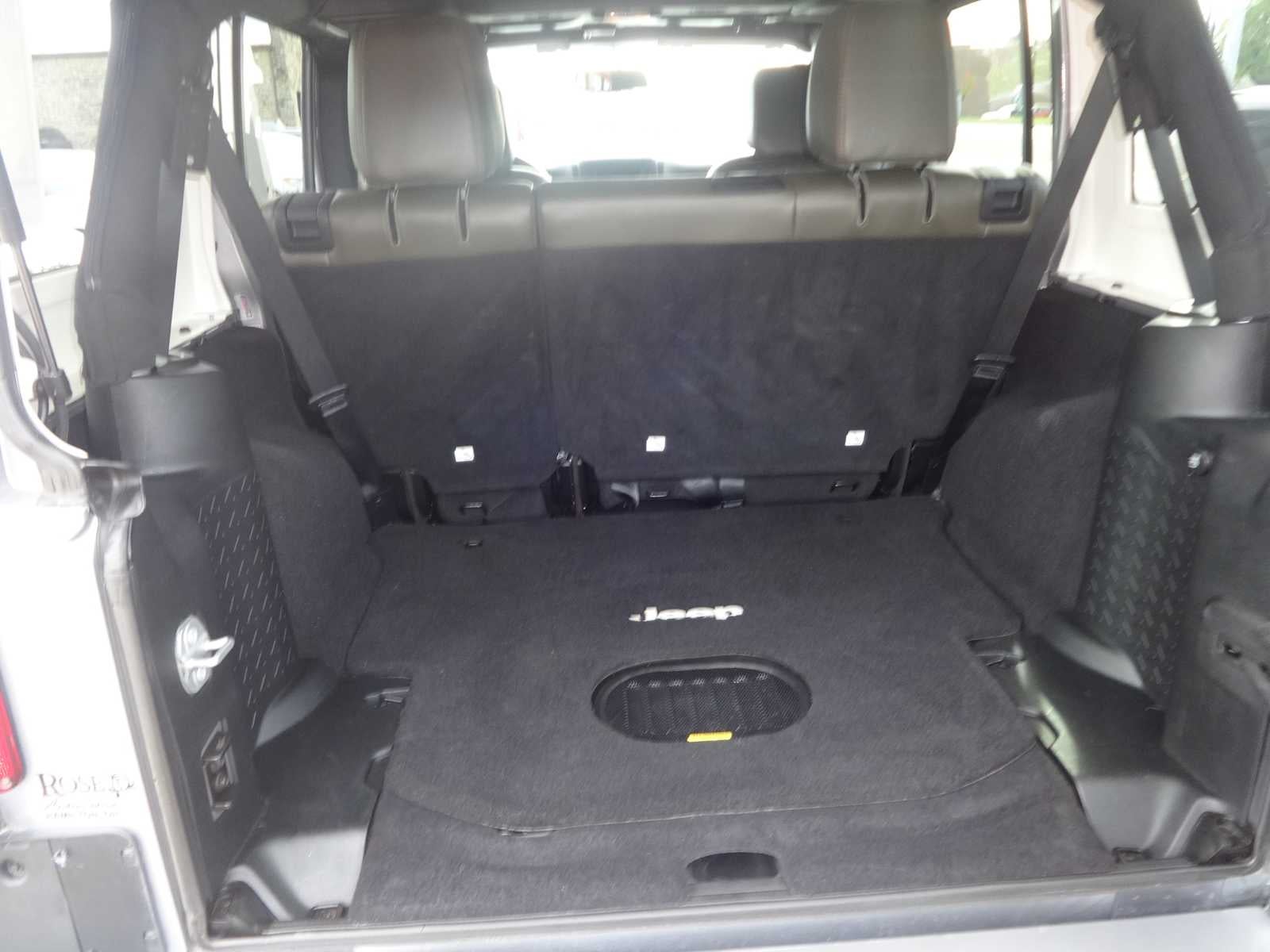 BODY COLOR 3-PIECE HARD TOP If ordering without AEM (Dual Top Group), the black soft top will not be included, Freedom Panel Storage Bag, Rear Window Defroster, Rear Window Wiper/Washer, TRANSMISSION: 5-SPEED AUTOMATIC (W5A580) Tip Start, Hill Descent Control, DARK OLIVE/BLACK, LEATHER TRIMMED BUCKET SEATS Front Seat Back Map Pockets, Driver Height Adjuster Seat, Heated Front Seats, RADIO: 430 NAV 6.5 Touchscreen Display, Remote USB Port, 40GB Hard Drive w/28GB Available, GPS Navigation, SiriusXM Travel Link, ALPINE 9-SPEAKER W/ALL WEATHER SUBWOOFER Amplified 552W, MAX TOW PACKAGE Class II Receiver Hitch, 3.73 Rear Axle Ratio, Trailer Tow w/4-Pin Connector Wiring, CONNECTIVITY GROUP Vehicle Information Center, Remote USB Port, Uconnect Voice Command w/Bluetooth®, Tire Pressure Monitoring Display, ANTI-SPIN DIFFERENTIAL REAR AXLE, REMOTE START SYSTEM, ENGINE: 3.6L V6 24V VVT (STD). Jeep Sahara with Billet Silver Metallic Clearcoat exterior and Dark Olive/Black interior features a V6 Cylinder Engine with 285 HP at 6400 RPM*. Check Brakes 50% or Better, Checks Belts No Repair Needed, Mechanically Inspected and Safety Inspected